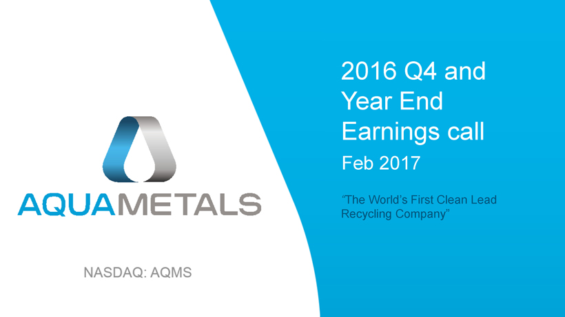 Feb 2017 “ The World’s First Clean Lead Recycling Company” 2016 Q4 and Year End Earnings call NASDAQ: AQMS