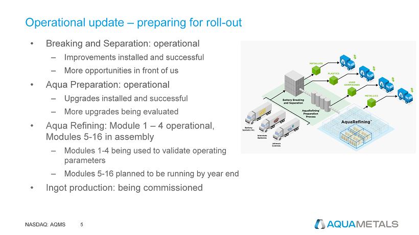 Agenda • Operational update • 48V vehicle batteries – a game changer for the lead industry? • Business expansion • Intellectual Property • CFO Succession • Financials • Summary 4 NASDAQ: AQMS